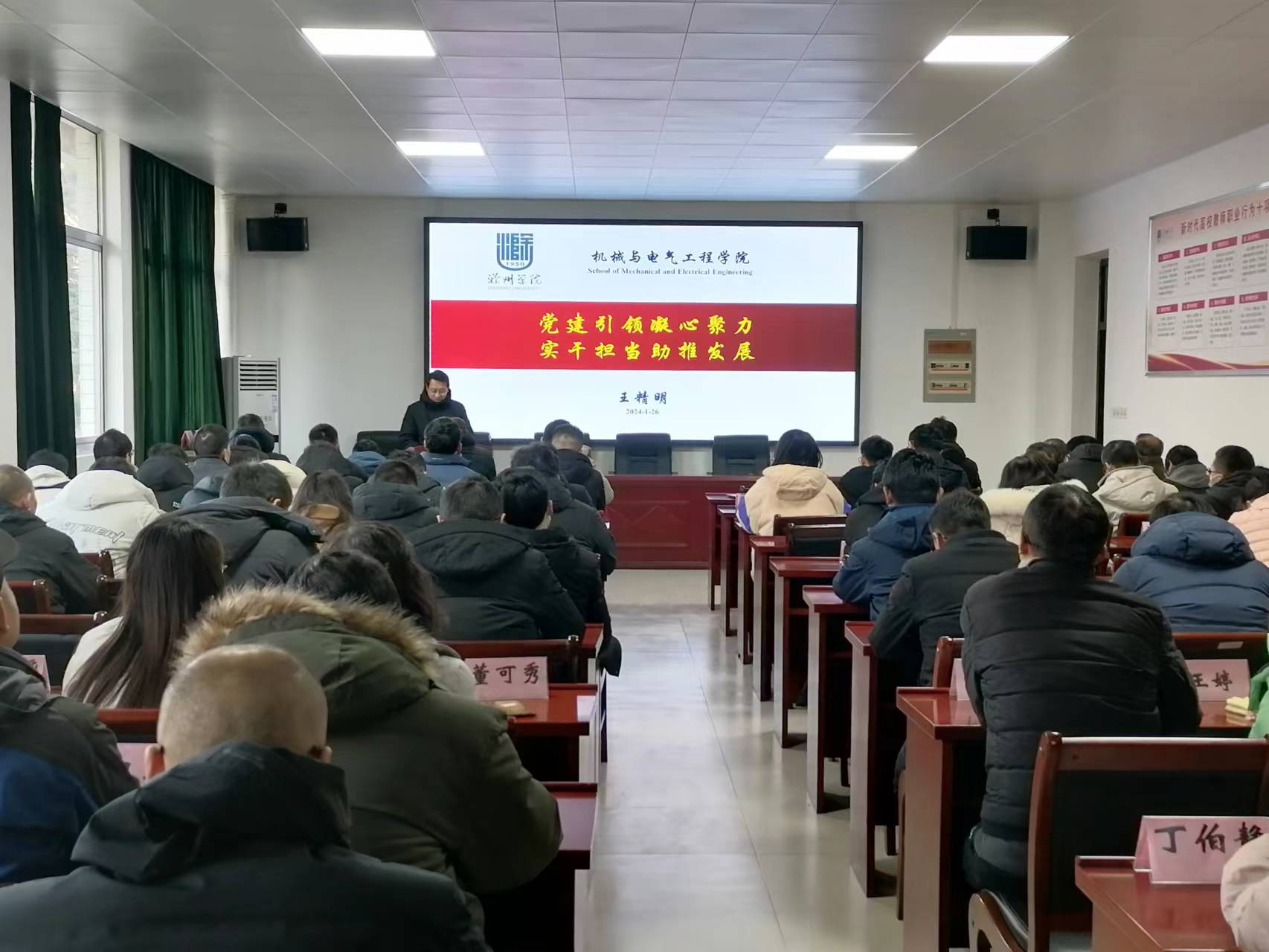 院长王精明以“党建引领凝心聚力、实干担当助推发展”为主题全面总结了学院2023年主要工作。他指出,2023年学院在本科教育教学评估、科研平台建设、师资队伍建设、教学成果、人才培养等方面取得了突破性成绩。他强调,新的一年,学院要聚焦学校第四次党代会目标,进一步将学院奋斗目标融入国家和学校发展战略中,坚定高发展路径,拉高标杆,自我加压,共同为学院;初审:王精明)